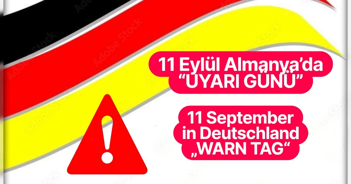 Almanya’da 11 Eylül 2025 Perşembe günü yeniden ülke çapında “Warntag” (Uyarı Günü) düzenlenecek. Saat 11.00’de tüm cep telefonlarına yüksek sesli bir uyarı mesajı gönderilecek. Yaklaşık 45 dakika sonra, yani 11.45’te, test amaçlı bir “entwarnung” (tehlike geçti bildirimi) yapılacak.