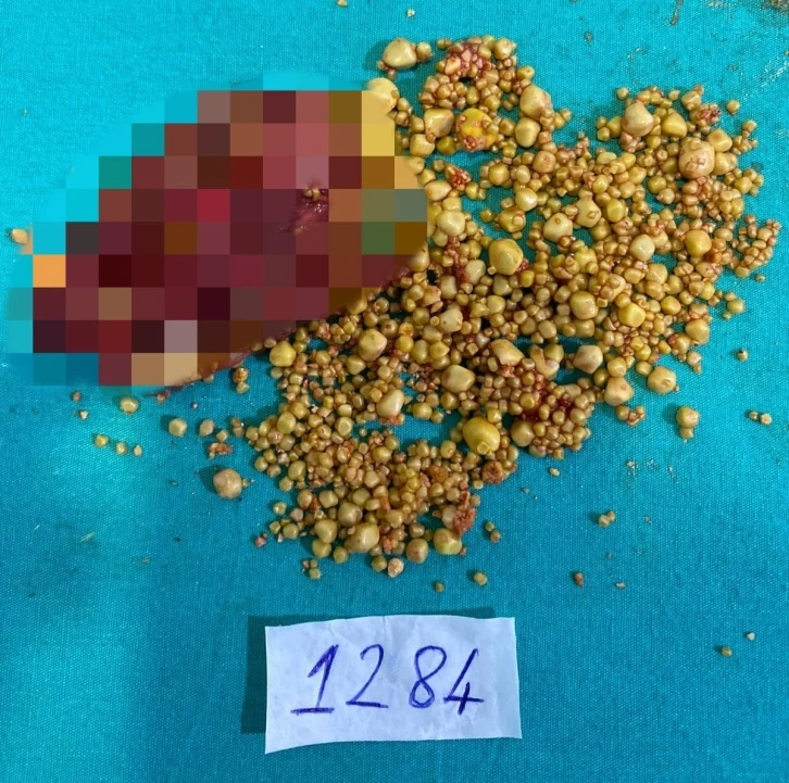 Durmaz’ın operasyonunu başarıyla gerçekleştiren Genel Cerrahi Uzmanı Op. Dr. Ahmet Karakaya, “Hastamız, Polikliniğimize karın ağrısı bulantı kusma şikâyetleriyle geldi. Hastaya ultrason çektik. Ultrasonda safra kesesinde çok sayıda taş tespit ettik. Daha sonra hastayla görüşüp, ameliyata karar verdik. Ameliyatı da laparoskopik dediğimiz kapalı yöntemle gerçekleştirdik. Operasyon sonrası safra kesesini açtığımızda 1284 tane taş gördük. Bu çok nadir görülen bir vakadaydı ve biz de ilk kez karşılaşıyoruz. Ancak operasyon çok başarılı geçti. Operasyondan bir gün sonra da hastamızı taburcu ettik” dedi.
