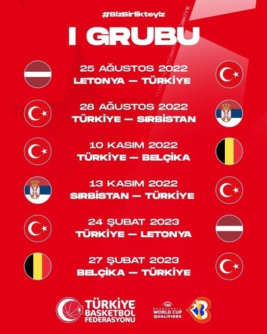 FIBA 2023 Dünya Kupası Elemeleri’nde mücadele eden A Milli Erkek Basketbol Takımı, ikinci turda Letonya, Belçika ve Sırbistan ile I Grubu’nda karşı karşıya gelecek.