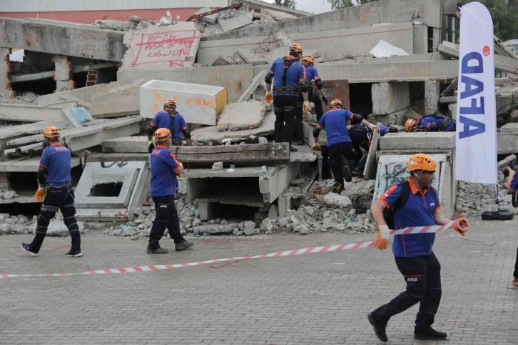 AFAD İzmir yerleşkesinin eğitim alanında yapılan tatbikatta ise senaryo gereği, merkez üssü İzmir’in Kemalpaşa ilçesi olan 5.9’luk bir deprem gerçekleşti. Depremin ardından bölgeye sevk edilen ekipler, havadan ve karadan alan taraması yaparak bazı binaların ve ağılların yıkıldığını tespit etti. Seviye 2’den afet çalışmalarına başlanması talimatının ardından 112’ye gelen ihbarda yıkılan ağıllardan birinde küçükbaş hayvanlarla birlikte sahibinin göçük altında kaldığı belirlendi. Harekete geçen ekipler, 1 kuzu ile sahibini göçükten kurtarırken, senaryo gereği yıkılan diğer binadan bir köpek kurtarıldı.