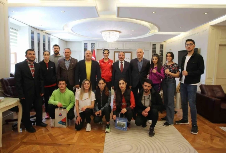 Katıldıkları turnuvalardan dereceyle dönen sporcu, antrenör ve hocaları makamında kabul eden AİÇÜ Rektörü Prof. Dr. Abdulhalik Karabulut, zengin ve çok yönlü bir sportif alt yapıya sahip Üniversitede yetişen gençlerin Ağrı’yı ve ülkemizi ulusal ve uluslararası şampiyonalarda başarıyla temsil etmelerinden gurur duyduğunu, her alanda başarıları olmaları için her zaman öğrencilerin yanında olduklarını söyledi.