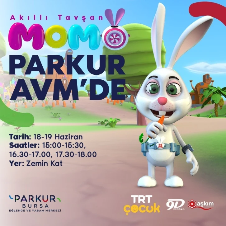 TRT Çocuk’un sevilen çizgi film kahramanı Akıllı Tavşan Momo, 18-19 Haziran 2022’de Parkur AVM’ye geliyor.