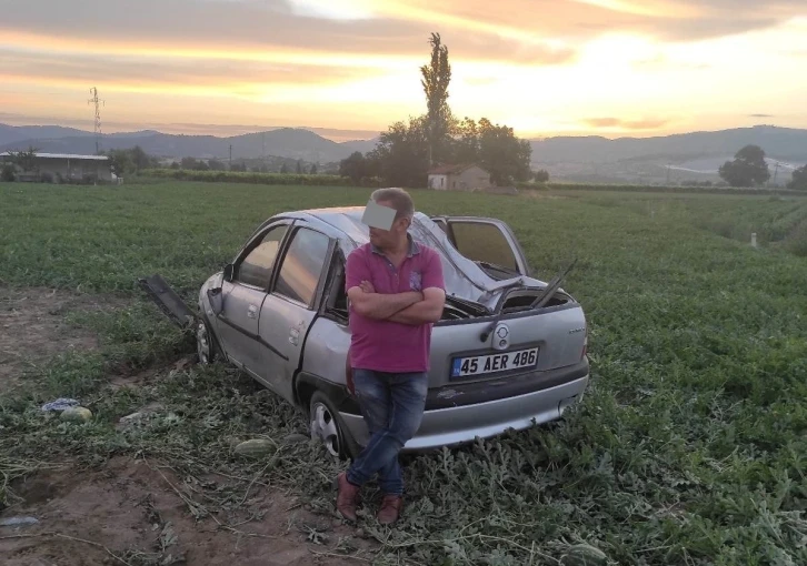 Manisa’nın Gölmarmara ilçesinde sürücüsünün 1.07 promil alkollü olan otomobil, sürücüsünün direksiyon hakimiyetini kaybetmesi sonucu yoldan çıkarak takla atıp tarlaya girdi. Araç sürücüsü kazayı yara almadan atlattı.
