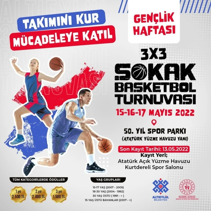 Pandemi koşulları sebebiyle uzun süredir ertelenen birçok etkinlik, kısıtlamaların yavaş yavaş kaldırılması ve gelen bahar ayı ile birlikte gençlerle buluşmaya devam ediyor. Gençlik Haftası etkinlikler de düzenlenen turnuvalar ile gençleri spora teşvik ederken mücadele ruhunu ve sağlıklı yaşamı da benimsemelerini hedefleyen Altıeylül Belediyesi, özellikle genç nesilden büyük takdir topluyor. 50. Yıl Spor Parkı’nda düzenlenecek olan etkinliklerde 3x3 Sokak Basketbol Turnuvası ve 4x4 Voleybol Turnuvası’nda mücadele edecek gençleri tüm kategorilerde çeşitli para ödülleri bekliyor. 3x3 Basketbol Turnuvası’nda kendi kategorisinde 1’inci olan takım 2 bin 500 TL, 2’nci olan takım 2 bin TL ve 3’üncü olan takım ise bin 500 TL’lik ödülün sahibi olurken; 4x4 Voleybol Turnuvası’nda kendi kategorisinde 1’inci olan takım 2 bin 400 TL, 2’nci olan takım bin 800 TL ve 3’üncü olan takım da bin 200 TL’lik ödülü almaya hak kazanacak.