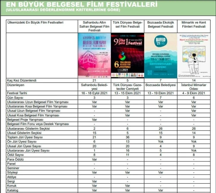 Safranbolu Belediyesinden yapılan açıklamada, kameraarkasi.org sitesi tarafından her yıl yapılan film festivalleri araştırmasında, bu yıl Uluslararası Altın Safran Belgesel Film Festivali’nin "En İyi Belgesel Film Festivali" seçildiği kaydedildi.