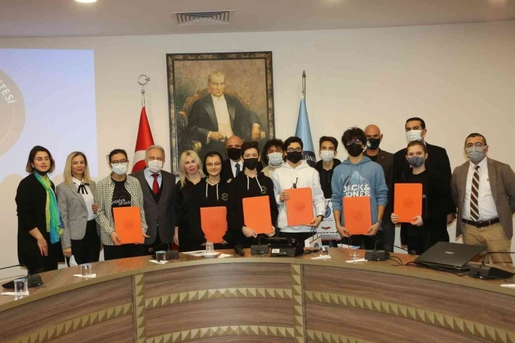 Eğitimlerini tamamlayan Antalya Anadolu Lisesi öğrencilerine İHA sertifikalarını veren Rektör Prof. Dr. Özlenen Özkan, “Mezunu olduğum Antalya Anadolu Lisesi ile ortak projeye imza atmak benim için mutluluk vesilesi oldu. Liselerle iş birliklerimiz sürecek” dedi.