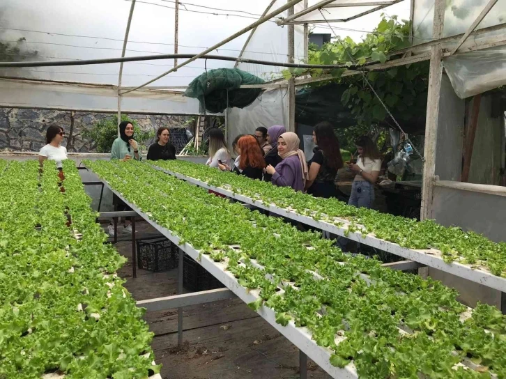 Geleceğin tarım modeli olarak adlandırılan “Topraksız tarım” fikri ile üretim yapan tesisi gezen Aşçılık Kulübü ve Aşçılık Programı öğrencileri, yöntem modelini yerinde araştırma imkanı buldu.