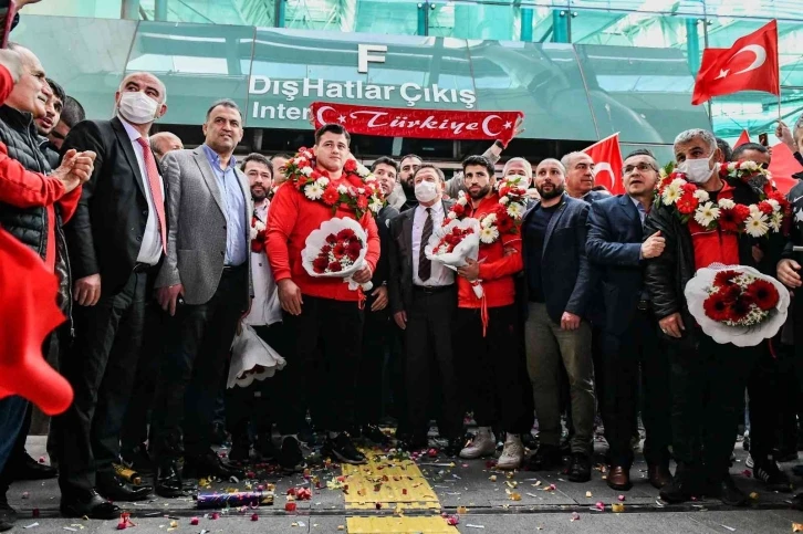 Macaristan’ın başkenti Budapeşte’te düzenlenen Avrupa Güreş Şampiyonası’nda şampiyonluk kazanan Rıza Kayaalp ve Murat Fırat yurda döndü. Milli güreşçileri Esenboğa Havalimanında kulüp yöneticileri, antrenörleri, çalışma arkadaşları Türk bayraklarıyla karşıladı.