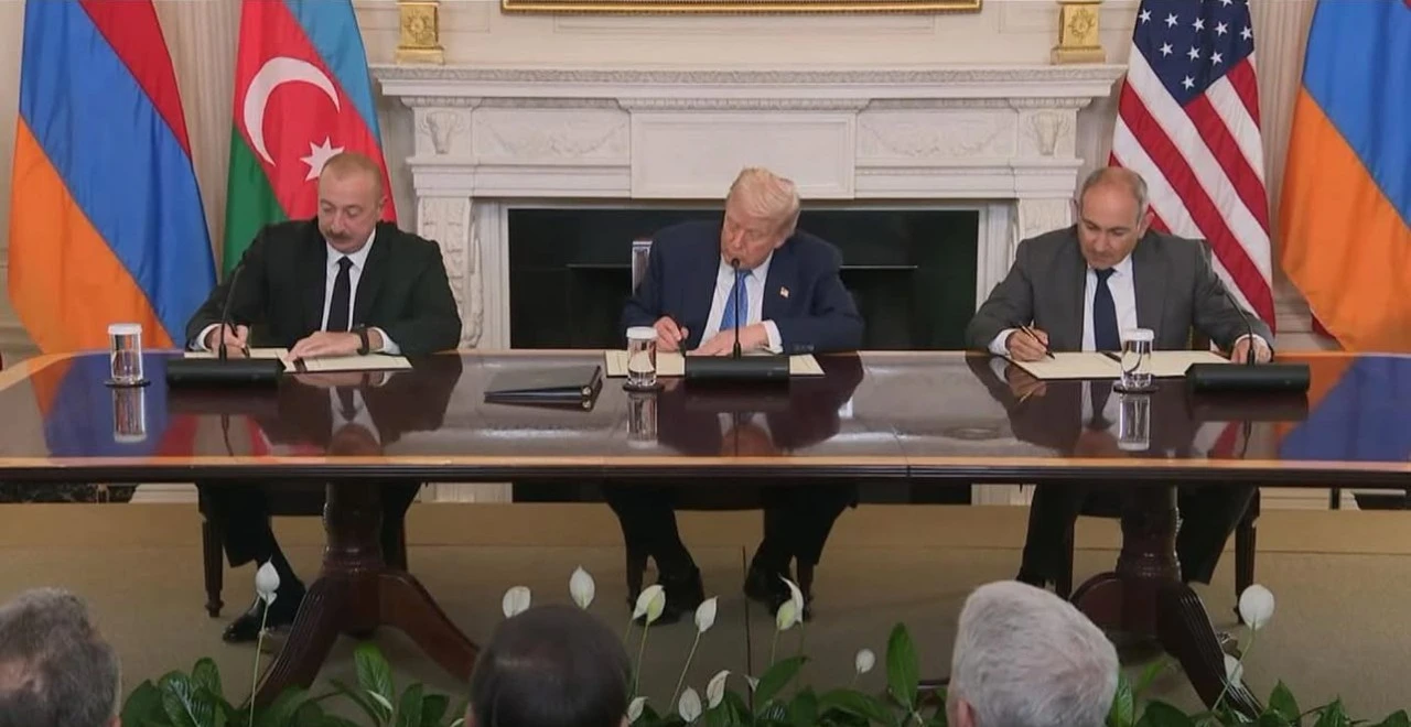 Beyaz Saray’da düzenlenen imza töreninde ABD Başkanı Donald Trump, Azerbaycan Cumhurbaşkanı İlham Aliyev ve Ermenistan Başbakanı Nikol Paşinyan, karşılıklı olarak diplomatik ilişkileri başlatma, savaşları durdurma ve birbirlerinin toprak bütünlüğüne saygı gösterme taahhüdünde bulundu. Aliyev ve Paşinyan, Trump’ın arabuluculuk rolünü överek kendisini Nobel Barış Ödülü’ne aday göstereceklerini açıkladı.