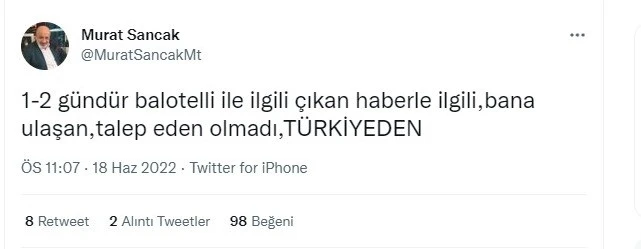 “1-2 gündür Balotelli ile ilgili çıkan haberle ilgili, bana ulaşan, talep eden olmadı Türkiye’den.”