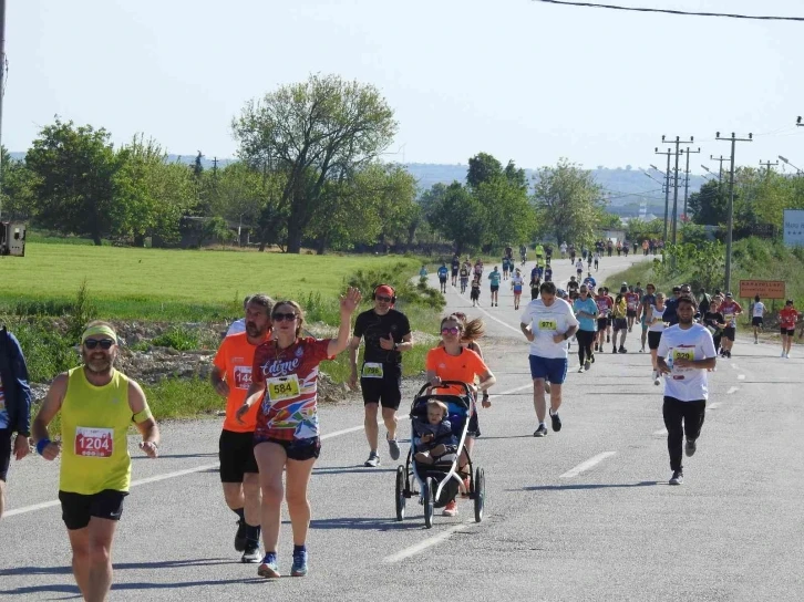 7. Uluslararası Edirne Maratonu’nda 16 aylık bebeği ile katılan bir anne ile savaşın yerini barışın alması için beyaz takım elbiseyle katılan sporcular maratonun ilgi odağı oldu.