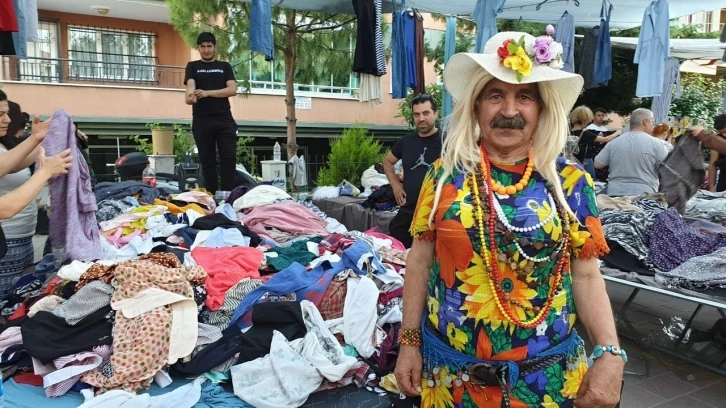 Denizli’de kurulan semt pazarında kadın kıyafetleri giyip peruk takarak, tezgahın üstünde göbek atan esnafı görenler, büyük bir şaşkınlık yaşadı. ’Bıyıklı Dudu Abla’ olarak ün yapan amatör tiyatrocu esnafın hem eğlendiren hem de para kazandıran sıra dışı yöntemi eğlenceli görüntüler oluşturdu.