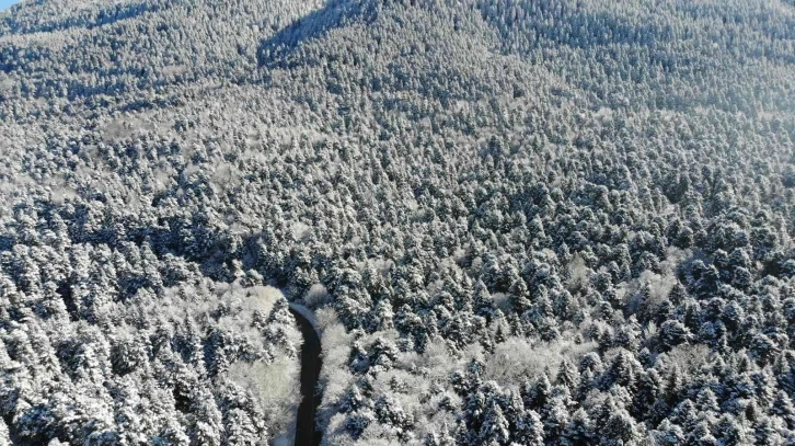 Bolu’da, kar yağışıyla birlikte beyaz örtüyle kaplanan dağlar havadan görüntülendi. Kar denizini andıran manzaranın oluştuğu ormanların kartpostallık görüntüleri mest etti.