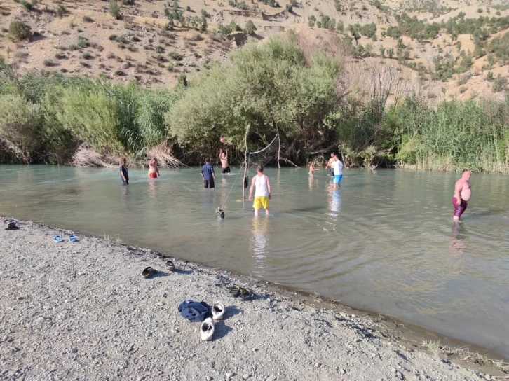 Şırnak’ta havaların ısınmasıyla beraber vatandaşlar derelerde hem serinliyor hem de voleybol oynuyor.