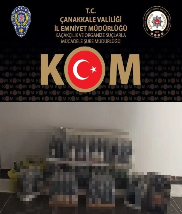 Çan İlçe Emniyet Müdürlüğü ve Çanakkale Kaçakçılık ve Organize Suçlarla Mücadele (KOM) Şube Müdürlüğü ekipleri tarafından E.Ş.’nin iş yerinde ve deposunda yapılan aramalar sonucunda 124 şişe sahte bandrollü 150 cl’lik içki ele geçirilerek el konuldu. Şüpheli E.Ş., 5607 SKM suçundan adli işlem yapılarak savcılık talimatıyla salıverildi.