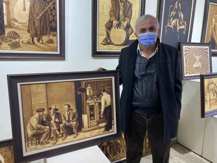 Zonguldak’ta Çatalağzı Enerji Termik Santrali’nde (ÇATES) elektronik ölçü kontrol ustası olarak çalışan Şaban Komşu yakma sanatıyla yaptığı eserlerini sergiledi.