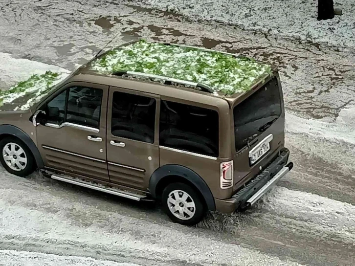 Konya’nın Çumra ilçesinde ceviz büyüklüğünde yağan dolu, ekili arazilere zarar verirken ilçe merkezinde ağaçların yapraklarını döktü. O anlar ise vatandaşların cep telefonlarına yansıdı. Dün ikindi saatlerinde yağmurla birlikte yağmaya başlayan dolu ilçe merkezinde etkili oldu. Dolu yağışı yaklaşık 10 dakika sürdü. Zaman zaman ceviz büyüklüğünde yağan dolu ilçe merkezini kısa süreliğine felç etti. Ağaçların yaprakları dökülürken, yollar adeta kar yağmış gibi beyaza büründü. Yağan dolu nedeniyle ilçe merkezindeki meyve ağaçları ile yakın bölgelerdeki tarım arazilerinde mısır başta olmak üzere tüm mahsullerde büyük çapta zarar oluştu. Dolunun yağış anı ise İzzetbey Mahallesi Halit Oflaz Caddesi üzerinde bir vatandaş tarafından cep telefonuyla kaydedildi.