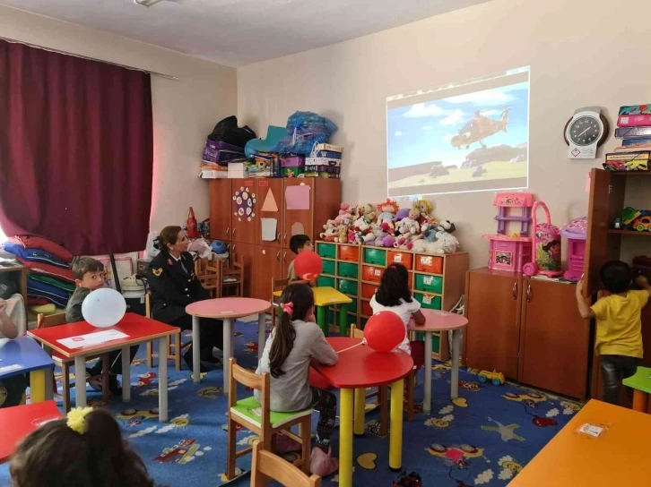 Jandarma personelleriyle keyifli vakit geçiren çocuklar ekiplere teşekkür etti.