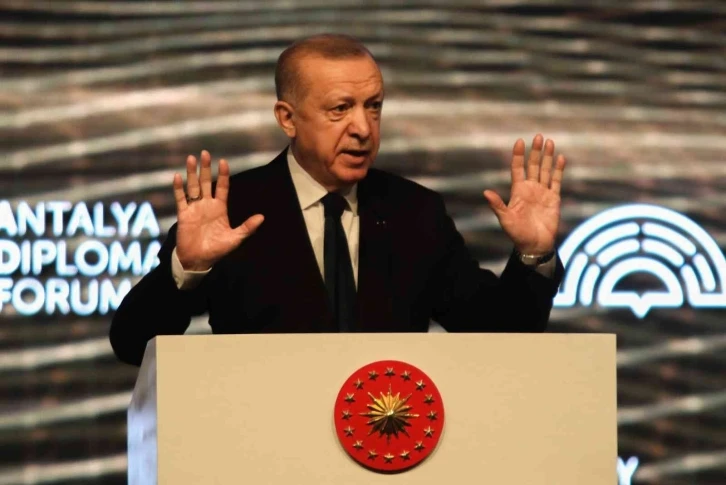 Cumhurbaşkanı Recep Tayyip Erdoğan, Antalya’da bu yıl 2’ncisi düzenlenen Antalya Diplomasi Forumu’nun (ADF) açılış programına katıldı. Turizm merkezi Belek’teki NEST Kongre Merkezi’nde düzenlenen formun açılışında konuşan Erdoğan, Rusya ve Ukrayna arasında devam eden savaşta Türkiye olarak hem can kayıplarının önüne geçmek hem de bölgede barış ve istikrarı yeniden tesis etmek için yoğun çaba harcadıklarını söyledi. Erdoğan, temennisinin bir an önce sağduyunun galip gelmesi ve silahların bir an önce susması olduğunu kaydetti. "Montrö Sözleşmesinin ülkemize verdiği yetkilerin kullanımı dahil elimizden gelen her türlü gayreti göstermeye devam edeceğiz"