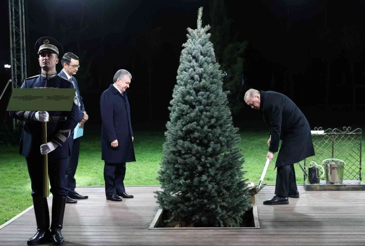 Cumhurbaşkanı Recep Tayyip Erdoğan, Özbekistan Cumhurbaşkanı Şevket Mirziyoyev ile dostluk ağacı dikti. Cumhurbaşkanı Recep Tayyip Erdoğan, Özbekistan Cumhurbaşkanı Şevket Mirziyoyev’in resmi davetlisi olarak temaslarda bulunmak üzere geldiği Özbekistan’da ikili ve heyetler arası görüşme sonrası Mirziyoyev ile ortak basın toplantısı düzenledi. Erdoğan ve Mirziyoyev daha sonra başkent Taşkent’te beraber dostluk ağacı dikti.