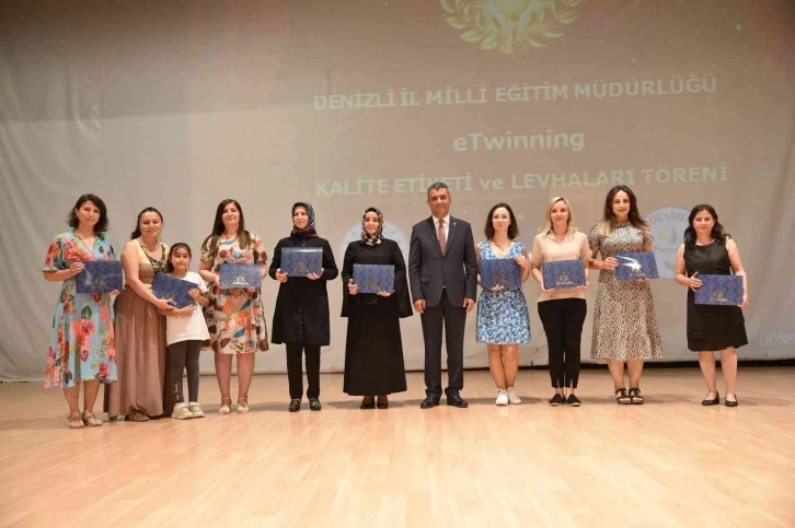 Denizli’de eTwinning ulusal ve Avrupa etiketi çerçevesinde yapılan etkinlik içerisinde yer alan öğretmenlere ve okullara belgeleri düzenlenen törenle verildi. Denizli’de Ulusal Kalite Etiketi, Avrupa Kalite Etiketi, Ulusal Kalite Etiketi Levhası, Avrupa Kalite Etiketi Levhası ile eTwinning Okul Unvanı alan öğretmenlere ve okullara belgeleri İl Milli Eğitim Müdürü Süleyman Ekici tarafından verildi.EGS Kongre ve Kültür Merkezinde gerçekleştirilen törene İl Milli Eğitim Müdürü Süleyman Ekici, Müdür Yardımcısı Mustafa Özevcimen, Şube Müdürü Yasin Temel, Yavuz Çağlar ve Avni Canpolat, okul müdürleri ve öğretmenler katıldı.İl Milli Eğitim Müdürü Süleyman Ekici konuşmasında, “Bugün eTwinning ulusal ve Avrupa etiketi vermek için bir araya geldik. eTwinning faaliyetlerinde disiplinlerarası bir etkileşim var. Burada hem bilişim teknolojileri alanında hem dil becerileri alanında hem de dijital platformda da olsa kültürler arası bir entegrasyon var. Siz bunu yaptığınız zaman okulunuzdaki öğrencinin vizyonunu ve bakış açısını genişletmiş oluyorsunuz ve 21. yy becerileri ile geleceğe hazırlıyorsunuz. e-Twininnig noktasında da temel teşkil eden Web 2.0 araçları ile çocuklarımızı dünya ile yarışır hale getiriyorsunuz. eTwinning akabinde de Erasmus projelerine temel teşkil ediyor. Birinde dijital yapılan hareketlilik diğerinde fiziki olarak gerçekleştiriliyor. Bugün 437 e-Twininng sertifikası vereceğiz. Geçen yıl bu etkinliklerimizde sınıflara sığmayacağız ve kongre merkezlerinde yapacağız demiştik. Bu sözümüzü siz öğretmenlerimizin değerli çalışmaları ile kat kat artırarak gerçekleştirdik” dedi.
