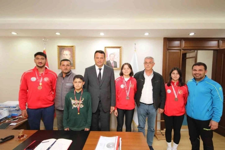 Kaş Belediye Başkanı Mutlu Ulutaş, turnuvalarda derece alan güreşçileri makamında kabul ederek, kutladı.
