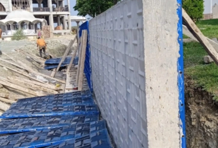 Akkent Mahallesinde yol ile yerleşim arasındaki kot farkından kaynaklı ihtiyaç duyulan istinat duvar imalatı başladı. Fen İşleri Müdürlüğü ekipleri, desenli kalıpla imalatına başladıkları istinat duvarı, 160 metre uzunluğunda, ortalama 2 metre yüksekliğinde olacak. Desenli istinat duvarı üzerine emniyet amaçlı tel çit çekilerek gerekli güvenlik önlemleri alınacak.
