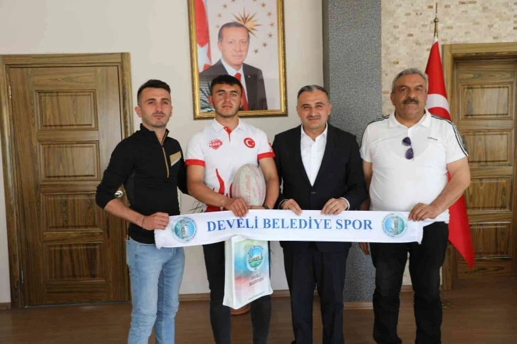 Develi Belediyesi Ragbi Takımı U18 7’li Ragbi Türkiye Şampiyonasında yarı finale kadar çıkarak 23 takım arasında 4. olma başarısı gösterdi. U18 7’li Ragbi Milli Takımına seçilme başarısı gösteren Develi Belediyesi Ragbi oyuncusu ve Muammer Kocatürk Mesleki ve Teknik Anadolu Lisesi öğrencisi Arif Arslan, Develi Belediye Başkanı Mehmet Cabbar’ı ziyaret etti.