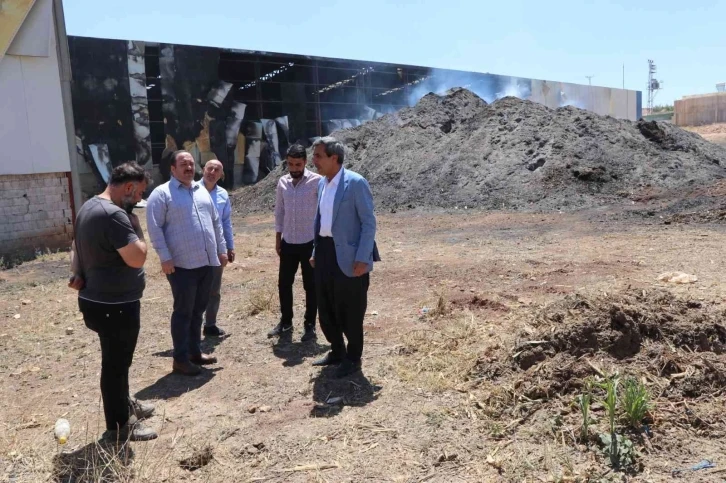 Viranşehir Belediye Başkanı Salih Ekinci, Organize Sanayi Bölgesinde (OSB) yangın çıkan biyokütle enerji santralinde incelemelerde bulundu.