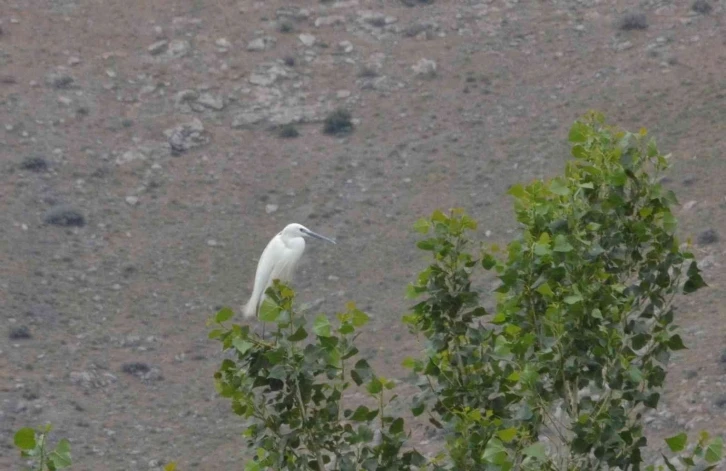 Kahramanmaraş’ın Elbistan ilçesinde, Ceyhan Nehri’ni mesken tutan ve bembeyaz tüyleri ile dikkat çeken küçük ak balıkçıl kuşu, objektiflere takıldı.