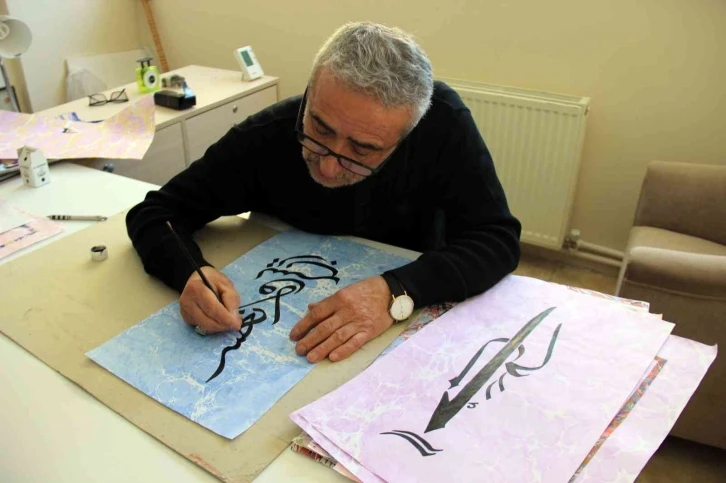 Kastamonu’da görev yaptığı dönemlerde ebru ve hat sanatına ilgi duymaya başlayan Selahattin Kocaer (60), gittiği kurslarda bu sanatları öğrenmeye başladı. 2017 yılında polislik mesleğinden emekli olduktan sonra vaktinin büyük çoğunluğunu ebru ve hat sanatına ayıran Kocaer, kendisini bu yönde geliştirerek birbirinden güzel eserler üretmeye başladı.