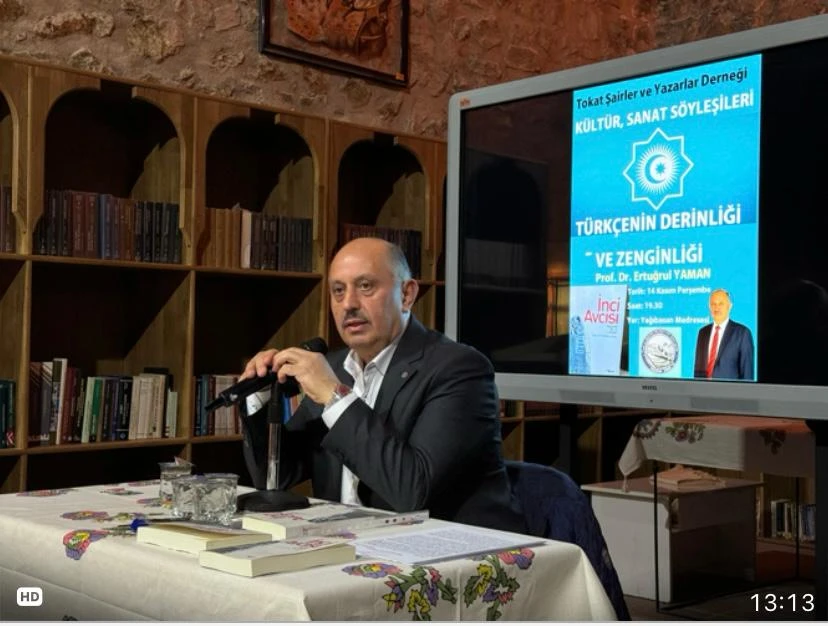 Huzur Şehri Tokat projesi kapsamında n düzenlenen ve yazar kadromuzdan Prof.Dr.Ertuğrul YAMAN tarafından icra edilen sohbet programında Türkçenin Derinliği ve Zenginliği başlıklı sohbette Türkçenin tarihsel sürecinde her biri adeta kilometre taşı olan ana eser ve şahsiyetler hakkında yeni ve farklı değerlendirmeler yapıldı. Ayrıca, Türkçenin kimi güncel konularına ışık tutuldu. Programda tarih öncesi zamanlardan günümüze uzanan süreçte Türkçenin kadim incilerini keşfetme yanında güncel konular ele alındı. Türkçenin güzelliklerini geleceğe yansıtma yolları üzerinde duruldu. Katılımcıların da görüşlerini ifade ettiği program Prof.Dr.Ertuğrul YAMAN’ın İNCİ AVCISI adlı yeni kitabını imzalamasıyla sona erdi.