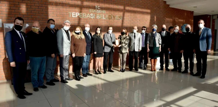 Tepebaşı Belediye Başkanı Dt. Ahmet Ataç’ı ziyaret eden Eskişehir Kent Konseyi Başkanı Nuray Akçasoy, Eskişehir için yaptığı çalışmalar için teşekkür ederek plaket takdim etti.