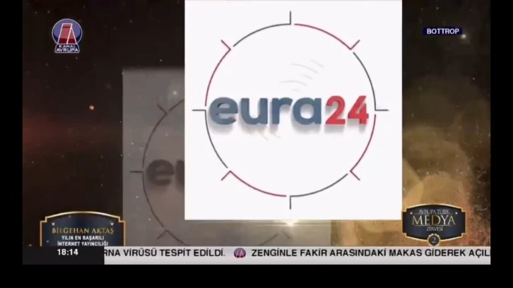 Eura24 haber sitemiz ilk uluslaraarası ödülünü aldı.Almanya'da gerçekleştirilen Avrupa Türk Medyası Zirvesinde Eura24 haber sitemzi yılın internet yayıncılığı ödülüne layık görüldü.