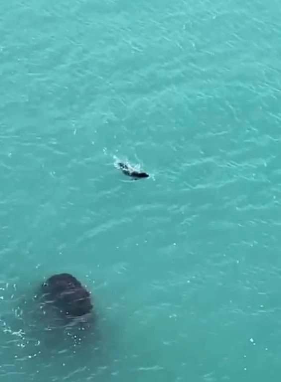Antalya’da falezlere yakın kısımda yüzen fok balığını görüntüleyen vatandaşlar, ıslık çalarak onun dikkatini çekmeye çalıştı.