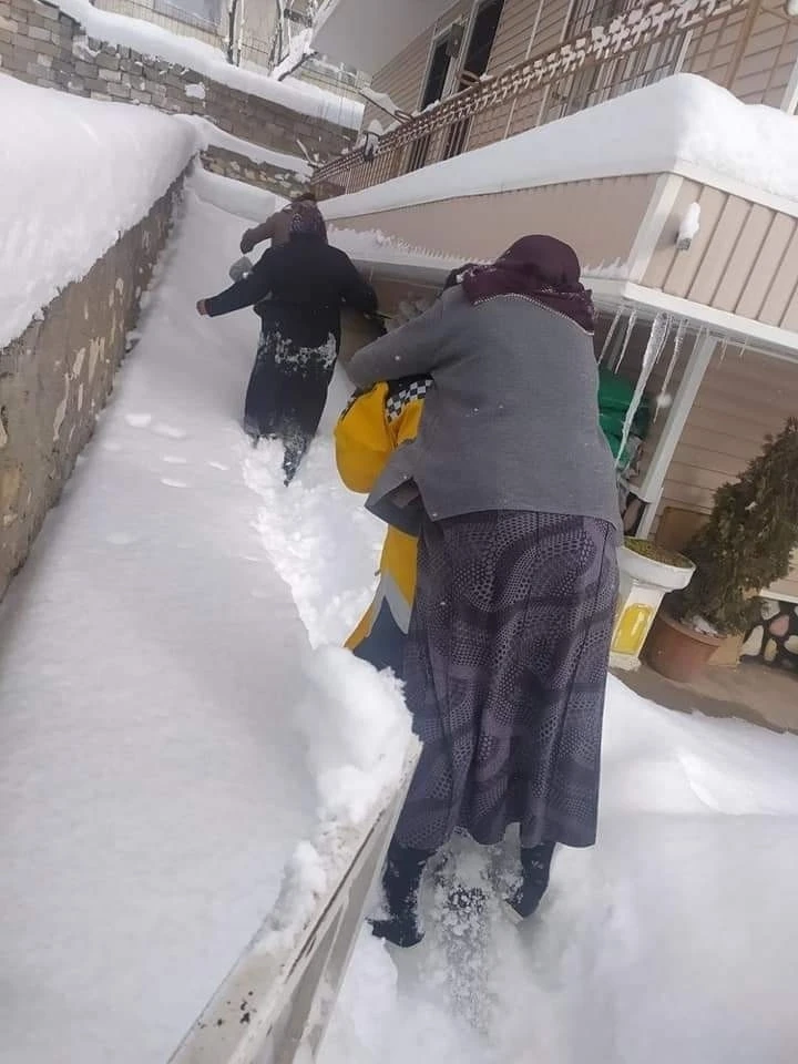 Kırşehir’de 112 görevlisi Mucur ilçesinde kar nedeniyle ulaşımın zor olduğu yolda hastayı sırtında taşıdı.