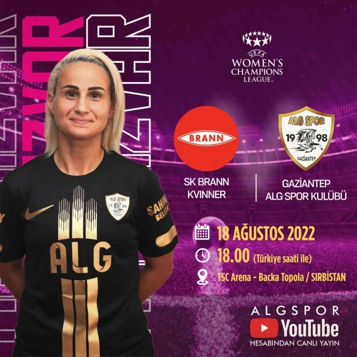 Turkcell Kadınlar Futbol Süper Ligi 2021-2022 sezonunu şampiyon olarak tamamlayan ve Avrupa Kadınlar Şampiyonlar Ligi’nde mücadele etmeye hak kazanan Gaziantep ALG Spor, ilk maçına yarın çıkıyor. Avrupa’da ülkemizi temsil edecek olan Gaziantep ALG Spor, Kadınlar Futbol Şampiyonlar Ligi ilk maçında yarın saat 18.00’da Norveç ekibi SK Brann ile karşı karşıya gelecek. Norveç ekibinin de onay vermesiyle birlikte Gaziantep ALG Spor - SK Brann maçı Sırbistan’ın Subotica şehrinde oynanacak. Son hazırlıklarını bugün yaptığı çalışma ile tamamlayan Sarı-grili takım, maç saatini beklemeye başladı. ALG Spor, yarın karşılaşacağı Norveç ekibi Brann’ı geçmesi halinde 21 Ağustos’ta bu kez Sırbistan ekibi Subotica ile yine deplasmanda karşı karşıya gelecek. "İnanıyoruz, başaracağız"