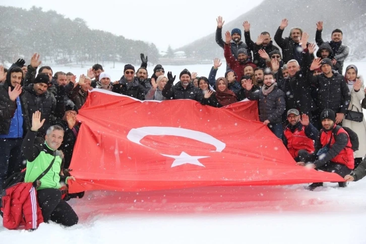 Amasya’da gençler kar yağışı altında doğa yürüyüşü yaptı.
