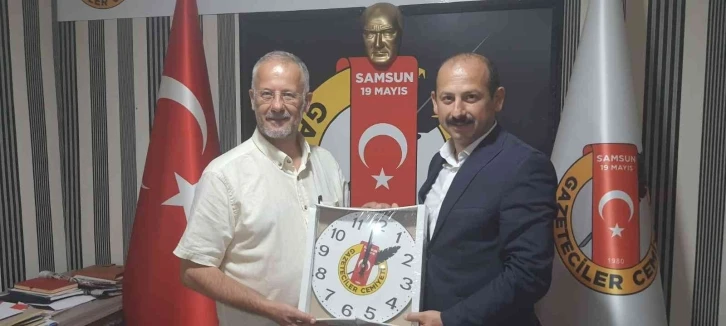 Ziyaretin sonunda Samsun 19 Mayıs Gazeteciler Cemiyeti Başkanı Yusuf Ziya Çakır tarafından Müdür Dereci’ye saat hediye edildi.