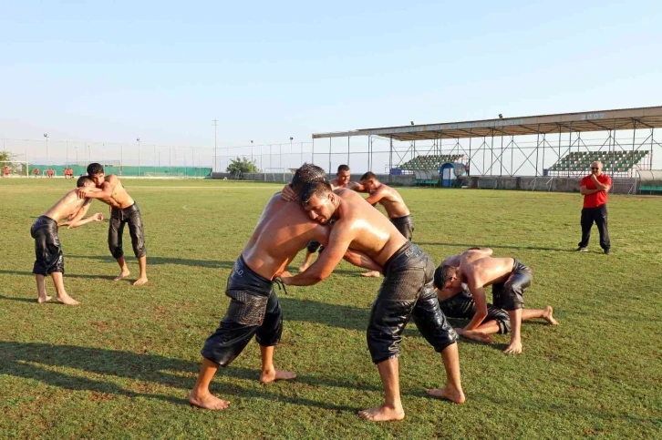 16. Geleneksel Gökbel Yağlı Pehlivan Güreşleri öncesi er meydanına çıkacak olan pehlivanlar Alanya’ya gelerek antrenman yaptılar.
