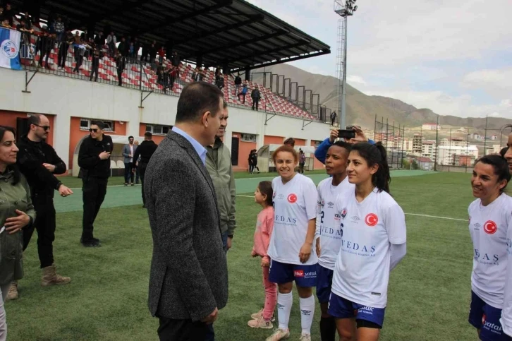 Maçın ardından Vali Akbıyık, sahaya inerek Hakkarigücüspor takım oyuncularını ve teknik heyeti tebrik etti.