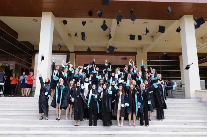 Hemşirelik ve Ebelik Bölümlerinin Ant İçme Töreni, keplerin atılması ile son buldu.