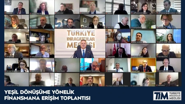TİM Sürdürülebilirlik Eylem Planı çerçevesinde; yeşil dönüşüm sürecinde güncel durum tespiti yapmak, ekosistemin tüm paydaşlarıyla iş birliğini geliştirmek ve ihracatçılara yeşil finansman olanaklarından azami ölçüde faydalanmalarını sağlamak amacıyla ilgili bakanlık ve kamu kurumlarının, uluslararası finans kurumlarının Türkiye temsilciliklerinin, bankaların, TİM Sanayide Sürdürülebilirlik Bilim Komitesi ve İklim Komitesi üyelerinin, ilgili sektör temsilcileri ve akademisyenlerin katılımıyla çevrimiçi olarak ‘Yeşil Dönüşüme Yönelik Finansmana Erişim Toplantısı’ gerçekleştirdi.