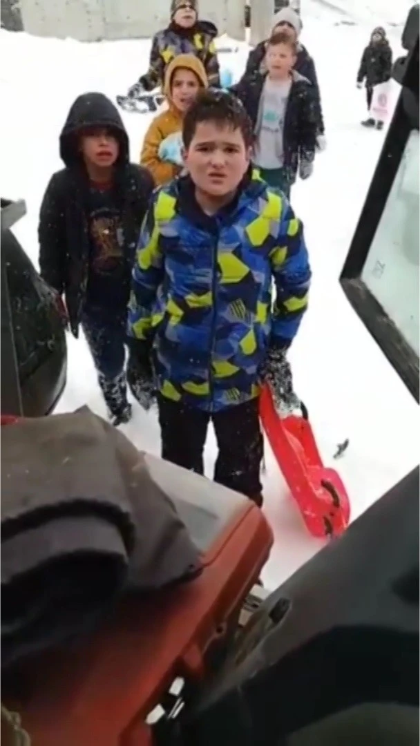Giresun’da etkili olan kar yağışı vatandaşlara ve sürücülere zorluk çıkarırken çocuklar için eğlenceli anlar ortaya çıkardı. Karla kaplanan yolda kızakla kayan çocuklar, yolu temizlemek için gelen iş makinesi operatöründen yolu kardan temizlememesini istedi. Operatör, çocuklara şikâyet olduğunu ve yolu temizleyeceğini söyledi. Bunun üzerine çocuklar, “Biz orada kayıyorduk. Eğlencemiz bozulur” deyince iş makinesi operatörü, “Tamam oradaki karları almıyorum” diyerek çocukların kayak yapmaya devam etmelerini istedi. Çocukların sevinci cep telefonu kameralarına yansıdı.