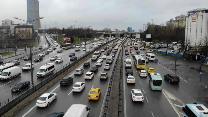 İstanbul’da kar yağışı uyarısıyla birlikte trafik yoğunluğu erken saatlerden itibaren etkili oldu. Trafik yoğunluğu yüzde 87 olarak ölçümlenirken oluşan uzun araç kuyruğu havadan görüntülendi.