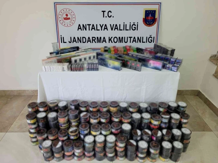 Antalya’nın Manavgat ilçesinde jandarma ekipleri tarafından bir markette yapılan aramada; gümrük kaçağı sigara, elektronik sigara ve kaçak nargile tütünü ele geçirildi.