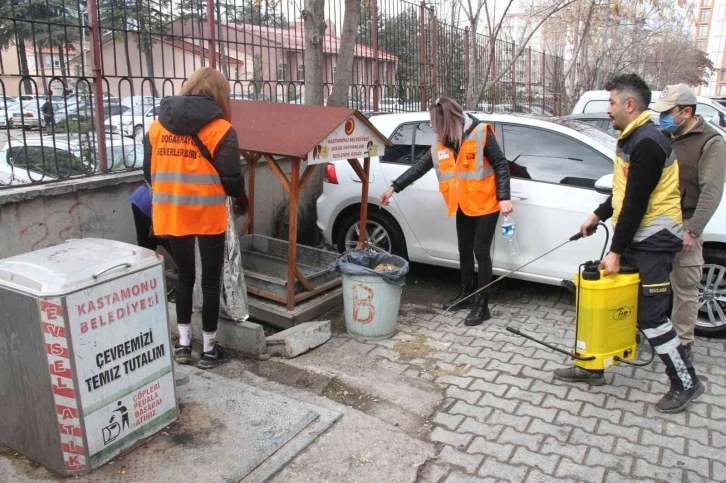Kastamonu’da sokak hayvanları için ekipler tarafından beslenme noktalarına mama bırakıldı.