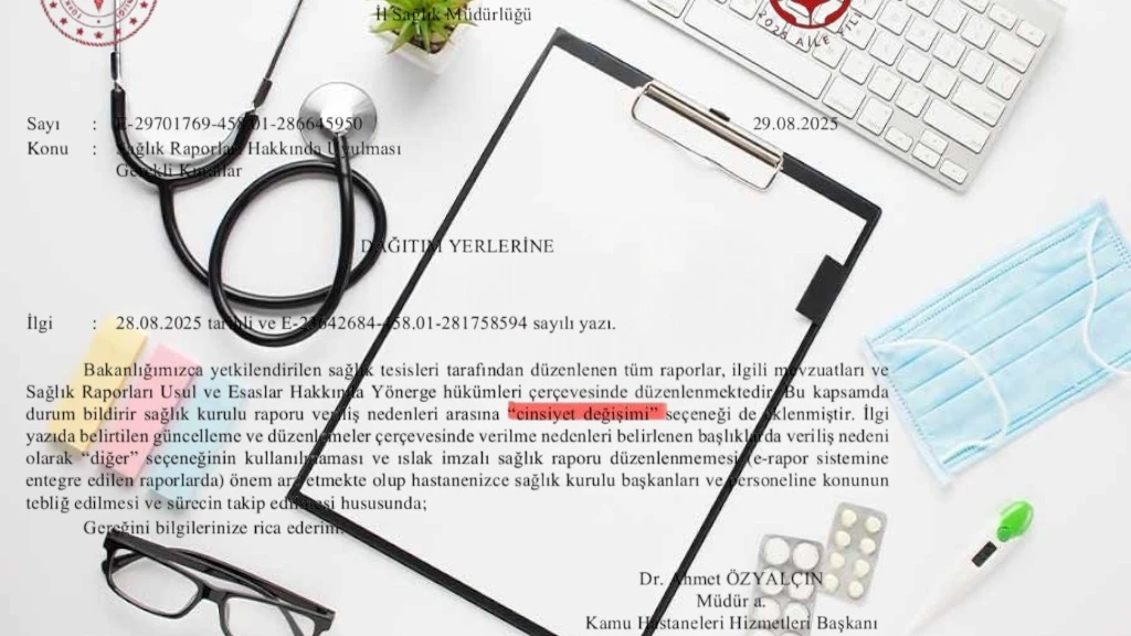Yapılan değişiklik kapsamında, durum bildirir sağlık kurulu raporu veriliş nedenleri arasına “cinsiyet değişimi” seçeneği eklendi. Yazıda ayrıca;