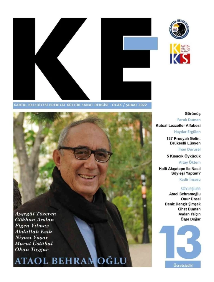 Her sayısında, edebiyat ve şiir dünyasının yaşayan bir değerini kapağa taşıyan KE dergisi, 13. sayısında toplumcu-gerçekçi şiirin büyük ustası Ataol Behramoğlu’nu konuk ediyor.