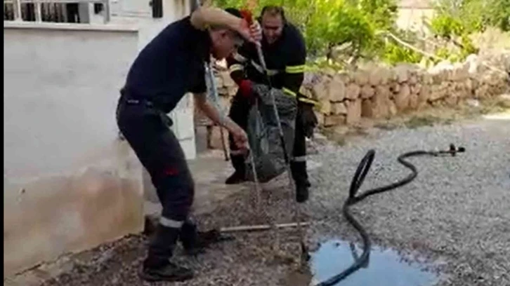 Kırıkkale’nin Yahşihan ilçesinde yağmur suyu borusuna giren 2 metrelik yılan, itfaiye ekiplerince yakalanarak doğaya bırakıldı.